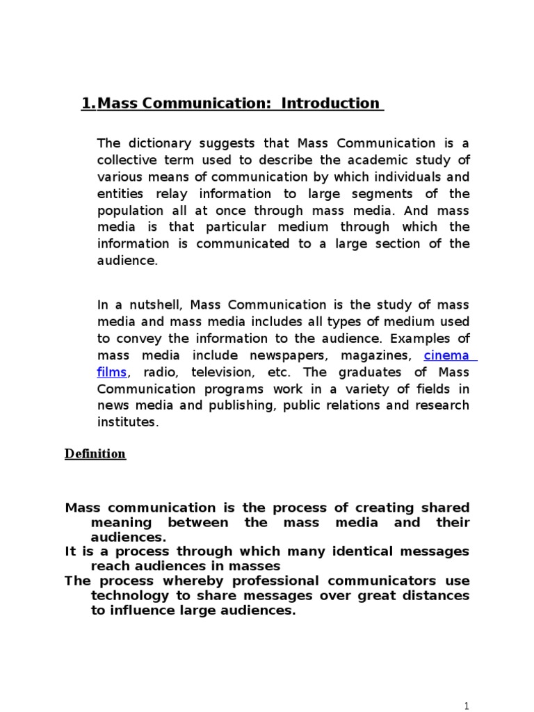 Defining Mass Communication Introduction To Communication