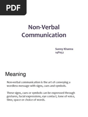 Definition of non verbal communication pdf. Communication has been called the transfer of meaning from one mind to another. Nonvocal verbal communication involves written communication as well as communication that is transmitted through transmitted through sign language finger spelling braille or other similar alternatives to verbal language. Nonverbal communication types include facial expressions gestures paralinguistics such as loudness or tone of voice body language proxemics or personal space eye gaze haptics touch appearance and artifacts. Nonverbal communication is multi channeled while verbal communication is single channeled.