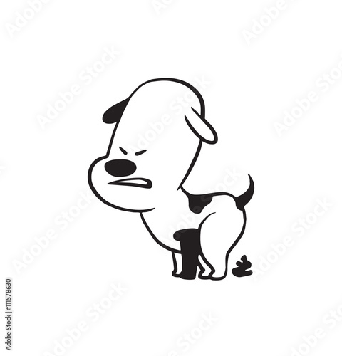 Vector Cartoon Image Of A Funny Little Dog Black White Colors Pooping On A White Background Made In Monochrome Style Positive Character Vector Illustration Buy This Stock Vector And Explore Similar Vectors