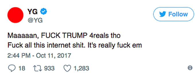 Yg Reminds Everyone He Dissed Donald Trump Over A Year Ago Complex