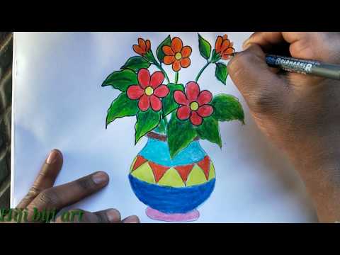How To A Draw Flower Vase Step By Step Very Easy Youtube