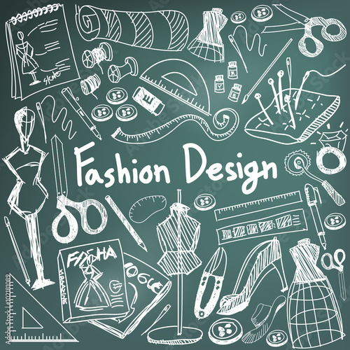 Fashion Design Education Handwriting Doodle Icon Tool Sign And Symbol In Blackboard Background Used For Designer Presentation Title With Header Text Create By Vector Buy This Stock Vector And Explore Similar