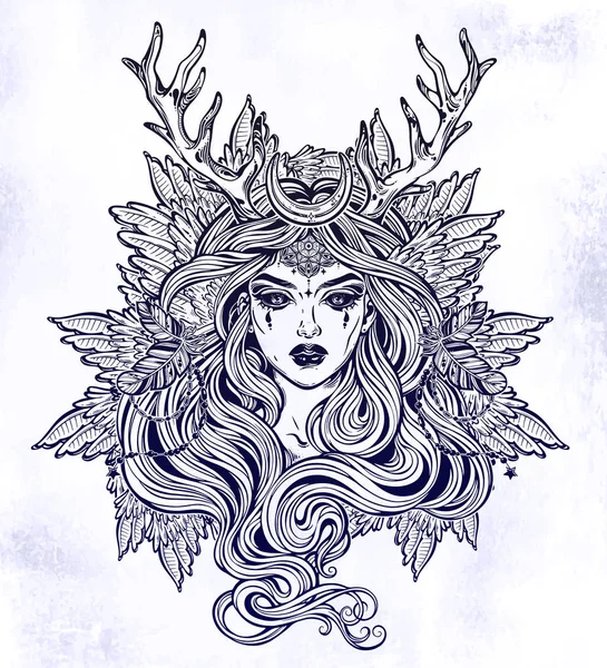 Goat Skull And Girl Head Tattoo Design Skulls Drawing Headdress Tattoo Goat Skull