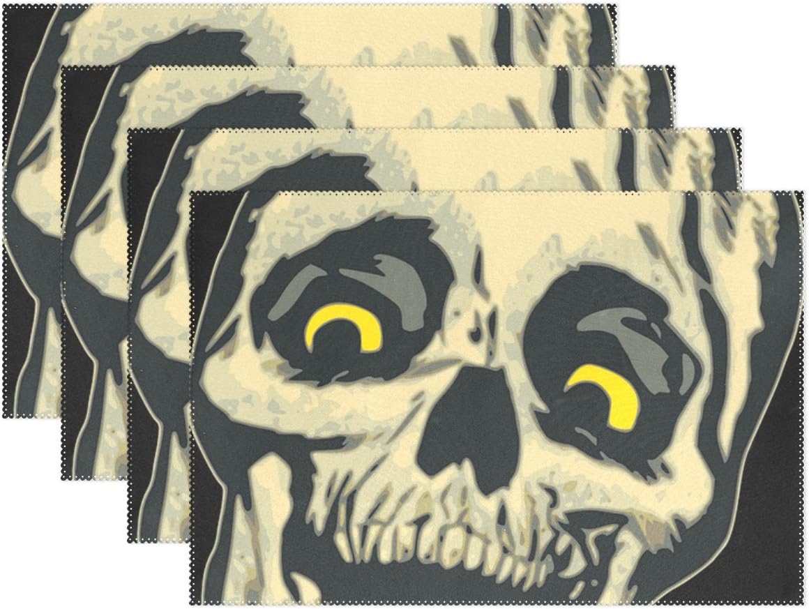 Amazon Com Qyueshang Cackle Comic Ghost Halloween Horror Scary Skull Placemats Set Of 4 Heat Insulation Stain Resistant For Dining Table Durable Non Slip Kitchen Table Place Mats Home Kitchen
