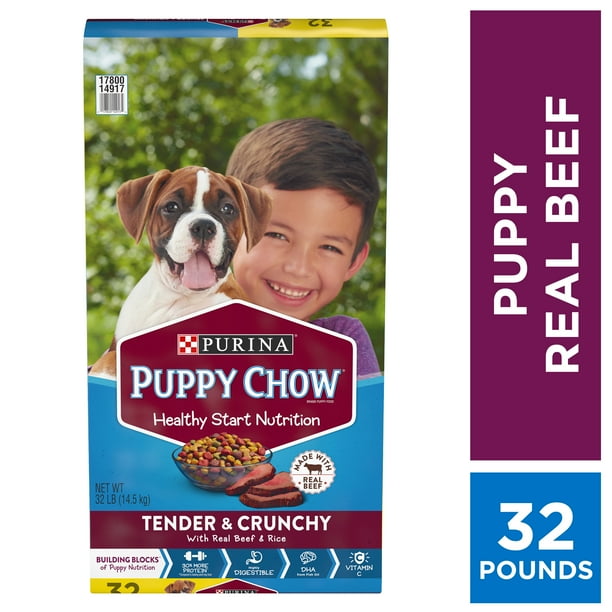 Purina Puppy Chow High Protein Dry Puppy Food Tender Crunchy With Real Beef 32 Lb Bag Walmart Com Walmart Com