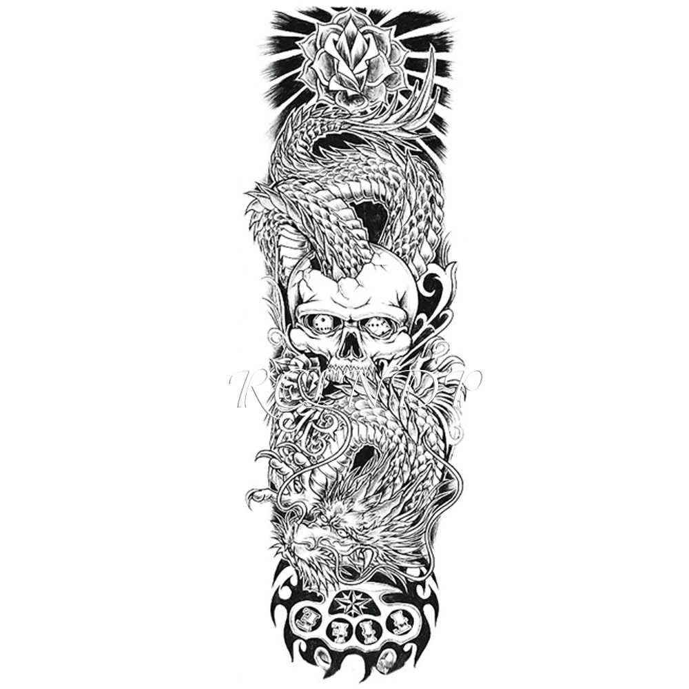 Waterproof Temporary Tattoo Sticker Black Dragon Skull Rose Flower Full Arm Fake Tatto Flash Tatoo For Men Women Temporary Tattoos Aliexpress