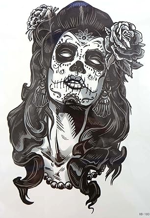 Sugar Skull Black And White Temporary Tattoo Realistic Fake Tattoo Fake Tattoos Temporary Rose Tattoo Tattooed Now