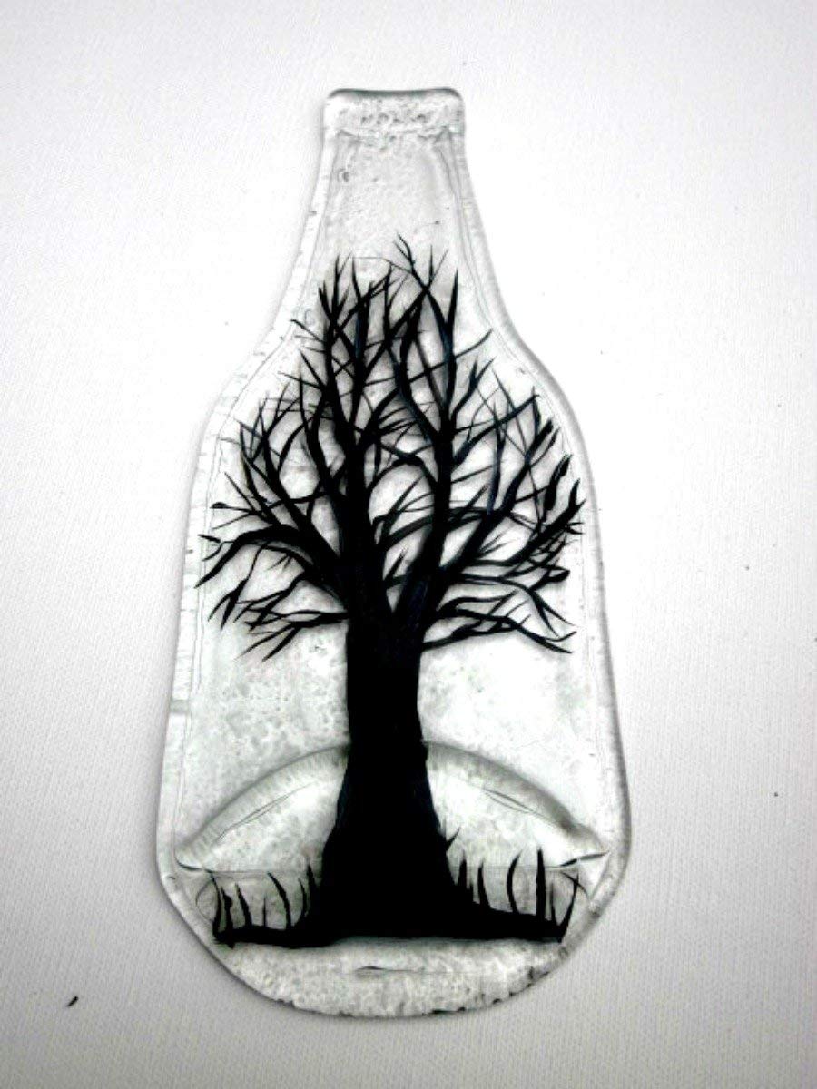 Melted Bottle Spoon Rest Kitchen Trivet Recycled Clear Glass Bottle Hand Painted Black Tree 9 X 3 5 Handmade Cjp Org In